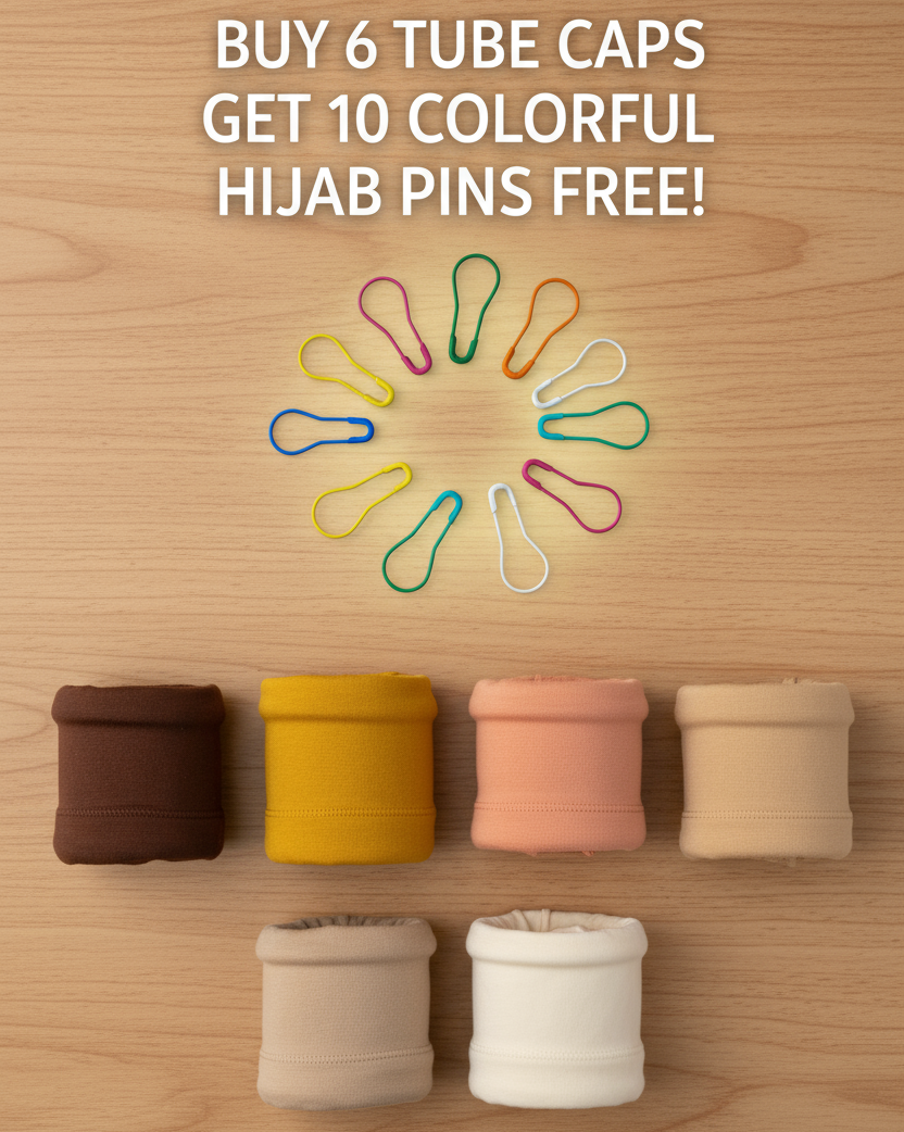 Complete your hijab look with our exclusive offer!Buy our Bundle of 6 Neutral Shades Tube Caps and get a pack of 10 vibrant hijab pins absolutely FREE.